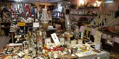 Eclectic mix of antiques, collectibles, collectibles, and vintage pieces.